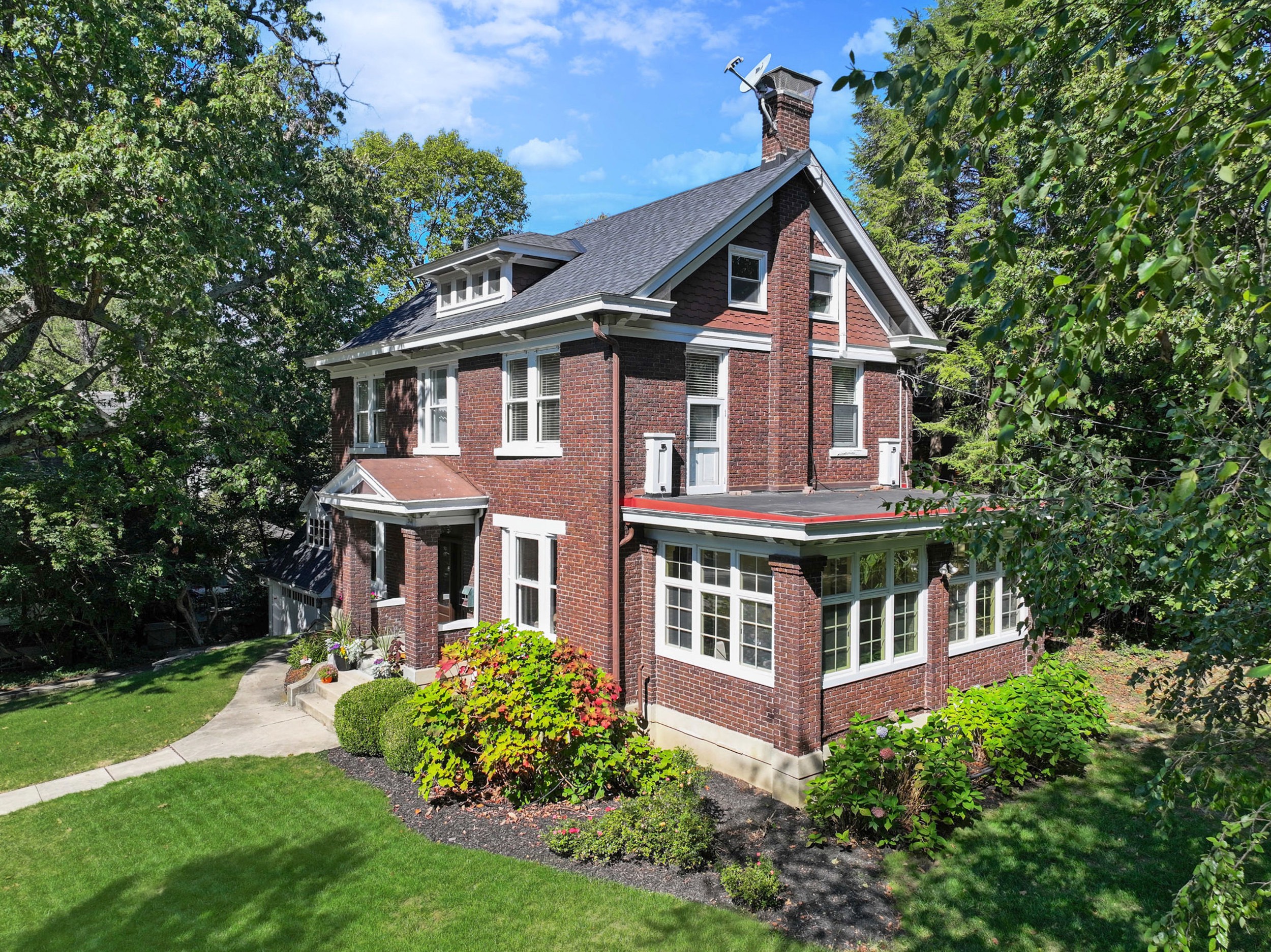 Timeless brick Colonial with many recent upgrades in the beautiful Observatory Historic district! The spacious, versatile layout is ideal for cozy comfort or entertaining guests. Elegant Foyer, crown molding, French doors, custom built-ins. First floor Living Room and Family Room. Remodeled Kitchen with 42 inch cabinets, granite, new appliances, 5 burner gas range, and Butler's Pantry with bev fridge! Professionally finished lower level in 2023 with Media Room, Rec Room, wet bar, and Bathroom! Primary Suite retreat with beamed ceiling, window seat, new Full Bath 2023! 2nd floor Laundry added. 2 Bedrooms with Jack & Jill Bath PLUS 2 more Bedrooms and new Full Bath on 3rd floor. Detached Garage with new door and loft area above. New Roof 2023, AC 2022, Furnace 2020. Amazing location near Ault Park!
